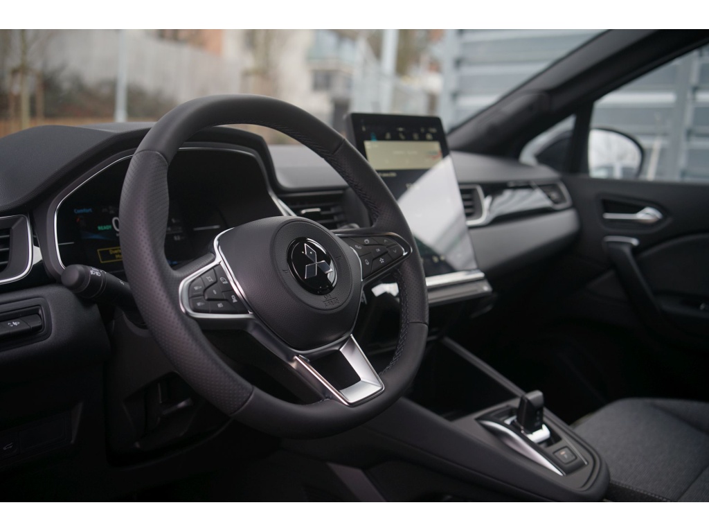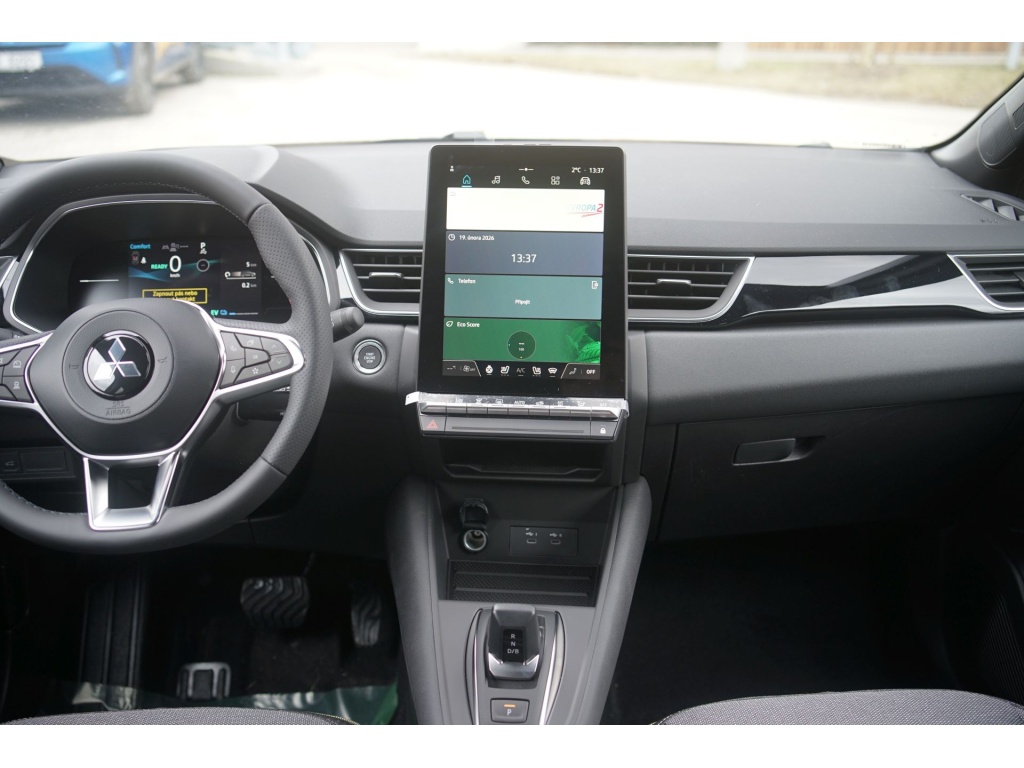 6 reproduktorů, Plně digitální přístrojový panel se 7" TFT displejem, Bezdrátové nabíjení mobilního telefonu, Datový a nabíjecí vstup USB-C na předním panelu (x2), Ovládání audiosystému pod volantem, Audiosystém 10,4", podpora bezdrátového Android Auto™ a CarPlay®, Bluetooth®, autorádio AM/FM/DAB (SDA), Automatické aktualizace multimediálního systému, Tlačítko pro nouzové přivolání pomoci (E-Call), Nabíjecí vstup USB-C v zadní části středové konzoly (x2), Propojení s vozidlem a ovládání vybraných funkcí pomocí mobilní aplikace Mitsubishi Motors, 3bodový bezpečnostní pás na předních sedadlech s předpínačem a omezovačem zátěže (x2), Sada pro nouzovou opravu pneumatik, Systém pro analýzu pozornosti řidiče, 3bodový bezpečnostní pás na zadních sedadlech (x3) s předpínačem a omezovačem zátěže (x2), Systém sledování dopravní situace za vozidlem při couvání (RCTA), Systém signalizace nouzového brzdění (ESS), Systém předcházení a zmírňování následků čelního nárazu s detekcí chodců a cyklistů (FCM), Systém sledování mrtvého úhlu (BSW), Systém kontroly tlaku v pneumatikách (TPMS), Antiblokovací brzdový systém (ABS), Dětská pojistka zámků zadních dveří, Multikolizní brzda, Výškově nastavitelné horní úchyty bezpečnostních pásů na předních sedadlech (x2), Elektronický systém rozdělení brzdného účinku (EBD), Elektronický imobilizér, Systém aktivního řízení stability (ASC), Hlavové (okenní) airbagy vpředu (x2), Upozornění na dodržování bezpečného odstupu, Asistent pro bezpečné opuštění vozidla, Systém elektronického řízení trakce (TCL), Možnost uložení vlastního nastavení bezpečnostních asistentů (My Safety Perso), Systém rozpoznávání dopravních značek upravujících rychlost (TSR) s inteligentním asistentem pro dodržení povolené rychlosti, Čelní airbagy řidiče a spolujezdce (x2), spínač deaktivace airbagu spolujezdce, Asistent rozjezdu do kopce (HSA), Systém monitorování a podpory udržování jízdního pruhu (LDW), Nouzový brzdový asistent (EBA), Spodní kryt předního nárazníku leskle černý, Přední a zadní nárazník v barvě karoserie, Disky kol z lehkých slitin 19" černostříbrné + pneumatiky 225/45 R19, Prostřední boční dveřní sloupek v černé barvě, Tónovaná skla, přední sklo bezpečnostní laminované, zadní pevnostní temperované, Parkovací kamera vzadu s projekcí na displeji audiosystému, Střešní anténa typu Shark fin v leskle černé barvě, Leskle černá mřížka chladiče s chromovými akcenty, Zatmavená zadní boční skla a zatmavené zadní sklo, Elektricky ovládaná, vyhřívaná a sklopná vnější zpětná zrcátka v leskle černé barvě s ukazateli směru, Plastové lemy blatníků (černé), Spodní část zadního nárazníku leskle černá, Zadní střešní spoiler v barvě karoserie, Parkovací senzory vpředu, vzadu a na boční straně (x12), Spodní kryt zadního nárazníku stříbrný, Ochranné spodní lemy dveří leskle černé, Kliky dveří v barvě karoserie, Černé přední sloupky, Funkce dvojitého dna v zavazadlovém prostoru, Přihrádky s držáky nápojů ve výplních předních a zadních dveří, Sluneční clona u řidiče a spolujezdce s LED osvětleným kosmetickým zrcátkem a držákem lístků, LED osvětlení přední části interiéru, Syntetickou kůží obšitý 3ramenný multifunkční volant, Osvětlení zavazadlového prostoru, Chromované vnitřní kliky dveří, LED osvětlení zadní části interiéru, Držáky nápojů vpředu ve středové konzole (x2), Tmavěšedé čalounění stropu, Kryt zavazadlového prostoru, Ambientní podsvícení interiéru, Palubní deska s měkkým obložením, Leskle černé dekory palubní desky, Osvětlená odkládací schránka na straně spolujezdce, Posuvná středová loketní opěrka vpředu s úložným prostorem, Bezrámečkové vnitřní zpětné zrcátko s automatickým stmíváním, Elektronický zámek pátých dveří s dotykovým ovládáním, Elektrické ovládání předních a zadních oken s funkcí AUTO a ochranou proti přivření, Výškově a podélně nastavitelný volant, Komfortní funkce ostřikovače předního skla, Elektrický posilovač řízení (EPS) s variabilním účinkem, Možnost vlastního nastavení jízdních režimů (My Sense), Centrální zamykání dveří s dálkovým ovládáním a dvěma ovladači, Automatická klimatizace s pylovým filtrem, Palubní počítač, ukazatel vnější teploty, Elektrická zásuvka 12V (v přední části středové konzoly) (x1), Elektricky ovládané páté dveře (ovládání pohybem nohy pod zadním nárazníkem), Inteligentní systém bezklíčového ovládání centrálního zamykání s tlačítkem START/STOP, Vyhřívaný volant, Elektrická zásuvka 12V (v zadní části středového tunelu) (x1), Dešťový senzor, Vyhřívané čelní sklo, Systém automatického zastavení a nastartování motoru (AS&G), Elektrická parkovací brzda (EPB) s funkcí Auto Hold, Výdechy ventilace pro zadní cestující (pod předními sedadly a v zadní části středového tunelu), Výškově nastavitelné opěrky hlavy na předních sedadlech (x2), Sedadla ve druhé řadě dělená v poměru 60:40, Posuvná lavice zadního sedadla (160 mm), Výškově nastavitelné opěrky hlavy na zadních sedadlech (x3), Výškově nastavitelné sedadlo spolujezdce, Ukotvení dětské bezpečnostní sedačky ISOFIX (x1 na místě spolujezdce, x2 na zadních sedadlech), Kapsy na zadní straně opěradla řidiče a spolujezdce, Látkové čalounění sedadel černé / šedé, Výškově nastavitelné sedadlo řidiče, Zadní mlhové světlo integrované v nárazníku, Automatická dálková světla (AHB), Přední LED světlomety s manuálním nastavením sklonu, Senzor automatického rozsvěcení světel, Přední