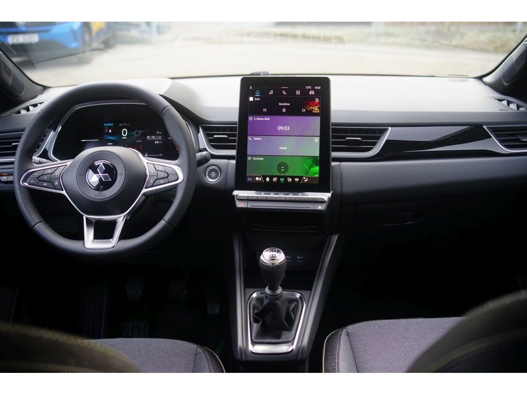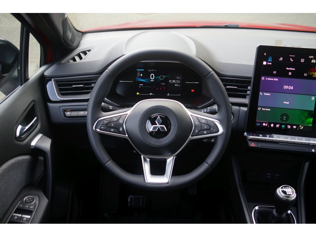 6 reproduktorů, Plně digitální přístrojový panel se 7" TFT displejem, Bezdrátové nabíjení mobilního telefonu, Datový a nabíjecí vstup USB-C na předním panelu (x2), Ovládání audiosystému pod volantem, Audiosystém 10,4", podpora bezdrátového Android Auto™ a CarPlay®, Bluetooth®, autorádio AM/FM/DAB (SDA), Automatické aktualizace multimediálního systému, Tlačítko pro nouzové přivolání pomoci (E-Call), Nabíjecí vstup USB-C v zadní části středové konzoly (x2), Propojení s vozidlem a ovládání vybraných funkcí pomocí mobilní aplikace Mitsubishi Motors, 3bodový bezpečnostní pás na předních sedadlech s předpínačem a omezovačem zátěže (x2), Sada pro nouzovou opravu pneumatik, Systém pro analýzu pozornosti řidiče, 3bodový bezpečnostní pás na zadních sedadlech (x3) s předpínačem a omezovačem zátěže (x2), Systém sledování dopravní situace za vozidlem při couvání (RCTA), Systém signalizace nouzového brzdění (ESS), Systém předcházení a zmírňování následků čelního nárazu s detekcí chodců a cyklistů (FCM), Systém sledování mrtvého úhlu (BSW), Systém kontroly tlaku v pneumatikách (TPMS), Antiblokovací brzdový systém (ABS), Dětská pojistka zámků zadních dveří, Multikolizní brzda, Výškově nastavitelné horní úchyty bezpečnostních pásů na předních sedadlech (x2), Elektronický systém rozdělení brzdného účinku (EBD), Elektronický imobilizér, Systém aktivního řízení stability (ASC), Hlavové (okenní) airbagy vpředu (x2), Upozornění na dodržování bezpečného odstupu, Asistent pro bezpečné opuštění vozidla, Systém elektronického řízení trakce (TCL), Možnost uložení vlastního nastavení bezpečnostních asistentů (My Safety Perso), Systém rozpoznávání dopravních značek upravujících rychlost (TSR) s inteligentním asistentem pro dodržení povolené rychlosti, Čelní airbagy řidiče a spolujezdce (x2), spínač deaktivace airbagu spolujezdce, Asistent rozjezdu do kopce (HSA), Systém monitorování a podpory udržování jízdního pruhu (LDW), Nouzový brzdový asistent (EBA), Spodní kryt předního nárazníku leskle černý, Přední a zadní nárazník v barvě karoserie, Disky kol z lehkých slitin 19" černostříbrné + pneumatiky 225/45 R19, Prostřední boční dveřní sloupek v černé barvě, Tónovaná skla, přední sklo bezpečnostní laminované, zadní pevnostní temperované, Parkovací kamera vzadu s projekcí na displeji audiosystému, Střešní anténa typu Shark fin v leskle černé barvě, Leskle černá mřížka chladiče s chromovými akcenty, Zatmavená zadní boční skla a zatmavené zadní sklo, Elektricky ovládaná, vyhřívaná a sklopná vnější zpětná zrcátka v leskle černé barvě s ukazateli směru, Plastové lemy blatníků (černé), Spodní část zadního nárazníku leskle černá, Zadní střešní spoiler v barvě karoserie, Parkovací senzory vpředu, vzadu a na boční straně (x12), Spodní kryt zadního nárazníku stříbrný, Ochranné spodní lemy dveří leskle černé, Kliky dveří v barvě karoserie, Černé přední sloupky, Funkce dvojitého dna v zavazadlovém prostoru, Přihrádky s držáky nápojů ve výplních předních a zadních dveří, Sluneční clona u řidiče a spolujezdce s LED osvětleným kosmetickým zrcátkem a držákem lístků, LED osvětlení přední části interiéru, Syntetickou kůží obšitý 3ramenný multifunkční volant, Osvětlení zavazadlového prostoru, Chromované vnitřní kliky dveří, LED osvětlení zadní části interiéru, Držáky nápojů vpředu ve středové konzole (x2), Tmavěšedé čalounění stropu, Kryt zavazadlového prostoru, Ambientní podsvícení interiéru, Palubní deska s měkkým obložením, Leskle černé dekory palubní desky, Osvětlená odkládací schránka na straně spolujezdce, Posuvná středová loketní opěrka vpředu s úložným prostorem, Bezrámečkové vnitřní zpětné zrcátko s automatickým stmíváním, Elektronický zámek pátých dveří s dotykovým ovládáním, Elektrické ovládání předních a zadních oken s funkcí AUTO a ochranou proti přivření, Výškově a podélně nastavitelný volant, Komfortní funkce ostřikovače předního skla, Elektrický posilovač řízení (EPS) s variabilním účinkem, Možnost vlastního nastavení jízdních režimů (My Sense), Centrální zamykání dveří s dálkovým ovládáním a dvěma ovladači, Automatická klimatizace s pylovým filtrem, Palubní počítač, ukazatel vnější teploty, Elektrická zásuvka 12V (v přední části středové konzoly) (x1), Elektricky ovládané páté dveře (ovládání pohybem nohy pod zadním nárazníkem), Inteligentní systém bezklíčového ovládání centrálního zamykání s tlačítkem START/STOP, Vyhřívaný volant, Elektrická zásuvka 12V (v zadní části středového tunelu) (x1), Dešťový senzor, Vyhřívané čelní sklo, Systém automatického zastavení a nastartování motoru (AS&G), Elektrická parkovací brzda (EPB) s funkcí Auto Hold, Výdechy ventilace pro zadní cestující (pod předními sedadly a v zadní části středového tunelu), Výškově nastavitelné opěrky hlavy na předních sedadlech (x2), Sedadla ve druhé řadě dělená v poměru 60:40, Posuvná lavice zadního sedadla (160 mm), Výškově nastavitelné opěrky hlavy na zadních sedadlech (x3), Výškově nastavitelné sedadlo spolujezdce, Ukotvení dětské bezpečnostní sedačky ISOFIX (x1 na místě spolujezdce, x2 na zadních sedadlech), Kapsy na zadní straně opěradla řidiče a spolujezdce, Látkové čalounění sedadel černé / šedé, Výškově nastavitelné sedadlo řidiče, Zadní mlhové světlo integrované v nárazníku, Automatická dálková světla (AHB), Přední LED světlomety s manuálním nastavením sklonu, Senzor automatického rozsvěcení světel, Přední